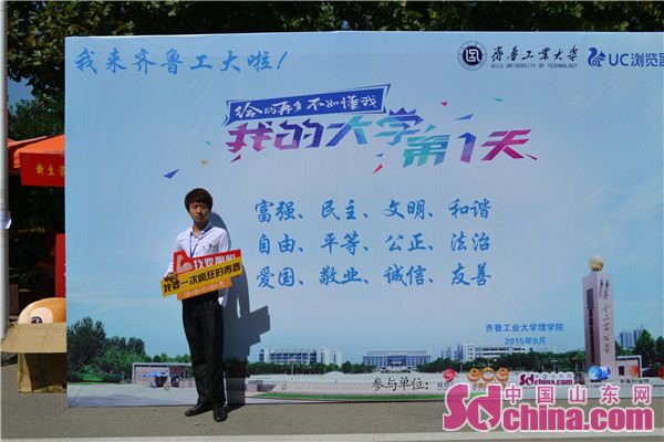9月7日是齊魯工業大學2015級新生報到入學的日子,齊魯工業大學在迎新現場舉辦了“我和社會主義核心價值觀有個合影”活動,提供免費拍照服務,為新生留下大學第一天與社會主義核心價值觀合影的珍貴影像。