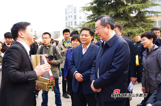 近日,新浪山東從齊魯工業大學了解到,3月20日,山東省2016年春季高校畢業生就業集中招聘活動服務省會城市群經濟圈專場在濟南西部大學科技園舉辦。此次招聘活動由山東省人力資源和社會保障廳主辦,齊魯工業大學承辦;由中共山東省委統戰部、山東省工商業聯合會主辦,齊魯工業大學承辦的2016山東民營企業人才招聘會同期舉辦。山東省政協副主席、省工商聯主席王乃靜,省委統戰部副部長、省工商聯黨組書記李法信,省人社廳副廳長、黨組副書記夏魯青,省工商聯副主席劉冠鳳,省工商聯黨組成員、秘書長孫占甲,齊魯工業大學黨委書記張士昌、校長陳嘉川、副書記王光芝、副校長周有波等領導到招聘現場看望參會單位代表和畢業生,并與他們親切交流。
