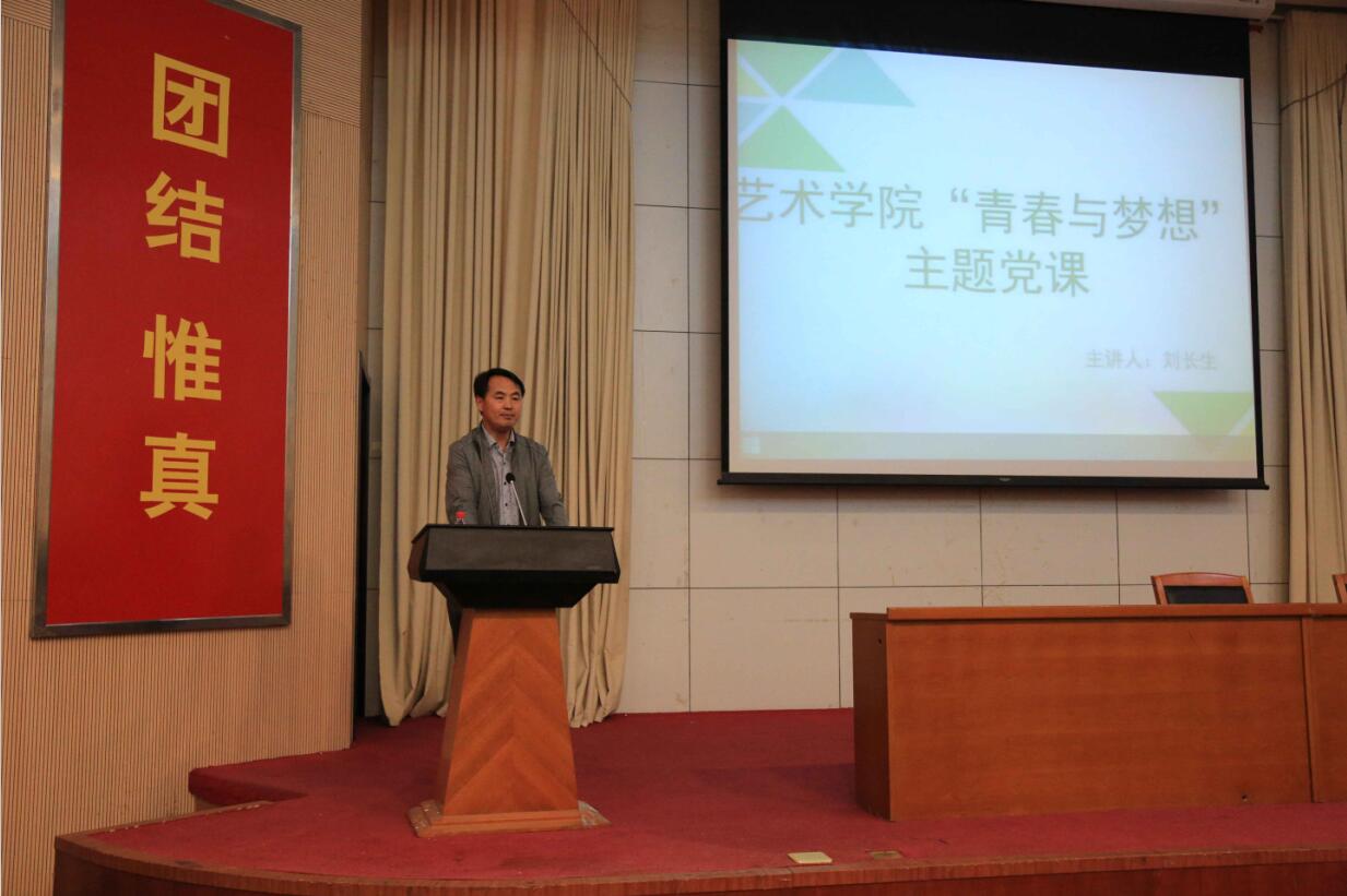 5月8日晚,齊魯工業大學藝術學院在行政樓報告廳舉辦“兩學一做”主題黨課——青春與夢想。黨課由藝術學院黨委副書記劉長生主講。藝術學院學生黨員、入黨積極分子和廣大青年學生近500人參加。藝術學院團委書記劉悅主持。