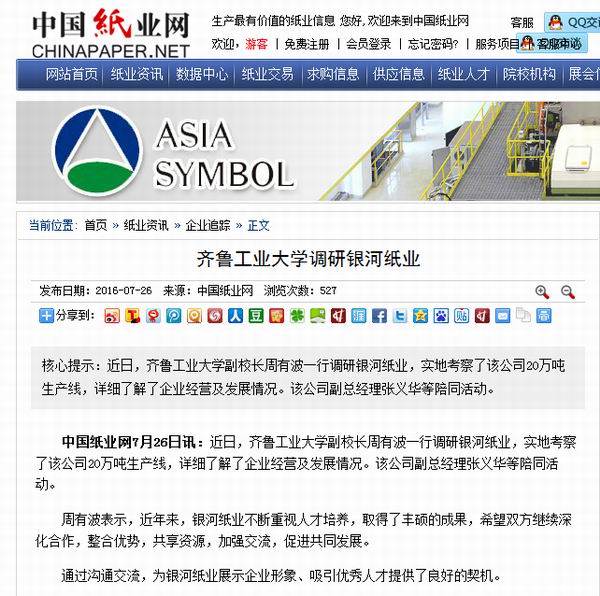 【中國紙業網】齊魯工業大學調研銀河紙業