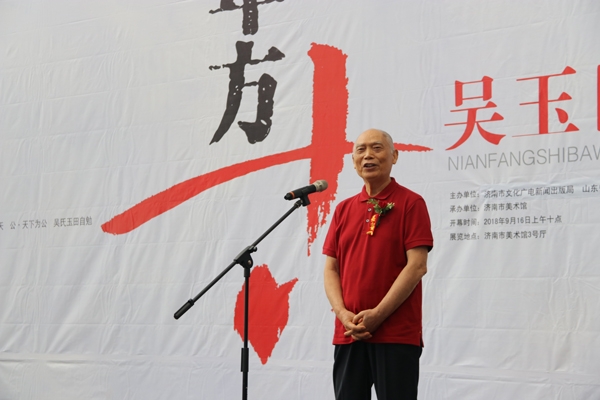吳玉田教授在致答謝詞中深情回顧了齊魯工業大學(山東省科學院)藝術設計學院創建的歷史,動情地講述了早期培養山東省高等學校藝術設計人才的過程。他表示,此次畫展是向學校(科學院)70周年校慶的獻禮作品,飽含著對學校(科學院)的深厚情誼,希望學校(科學院)在廣大師生的共同努力下,創造出更加美好璀璨的未來。
