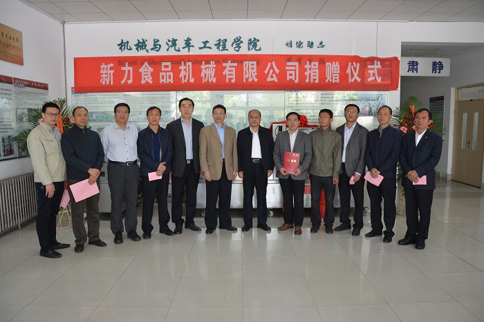 在學校70周年華誕之際,10月15日上午,泗水新力食品機械有限公司向學校捐贈教學儀器設備,捐贈儀式在第三教學樓A座大廳舉行。副校長(副院長)賀國平,泗水縣副縣長齊劍波,泗水新力食品機械有限公司總經理、機械專業八三級校友張峻偉,泗水縣科技局副局長尤明泉,泗水縣開發區副主任王波,泗水縣開發區經發局長劉凱,泗水縣職業中專副校長喬志鵬,統戰部長張以剛,校友辦主任湯慶磊等出席捐贈儀式。儀式由機械與汽車工程學院黨委書記尚明主持。