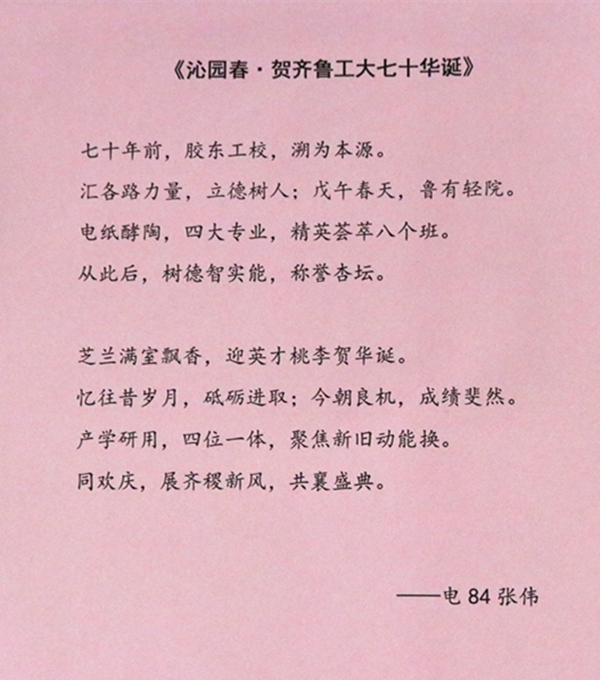 淄博校友會:淄博校友祝賀母校七十華誕,祝愿母校越辦越好。