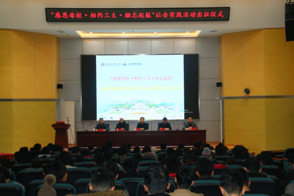 曹茂永在講話中指出,此次以“感恩母?!は嗉s工大·勵志起航”為主題的寒假社會實踐活動,體現了“五有人才”培養的要求,傳承發揚了山東儒家文化傳統。他強調,近幾年學校發展勢頭良好,進步明顯成績可喜,但離省委省政府提出的“建設國內一流,國際上有重要影響力的應用研究型大學”的目標還有一定差距,需要每一個工大人篤志聚力、躬身伏櫪。他勉勵同學們,要扎實向學,做工大品牌的創造者;要積極向上,做工大聲譽的傳播者;要懂得感恩,做人格高尚的追夢者。他叮囑同學們,在活動過程中要確保人身安全,把各項準備工作做實做細,及時與老師和家長溝通聯系,力爭交出一份圓滿的答卷。
