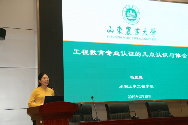 山東農業大學水利水電專業2017年通過認證,水利土木工程學院副院長馮竟竟談了她在工程教育專業認證工作中的幾點認識與體會,她對專業認證的三大理念進行了深入的剖析,并且提出了專業認證工作要求中的三個循環改進體系。