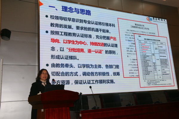 青島科技大學目前有十二個專業通過認證,有著豐富的認證經驗。作為教務處處長,王霞對認證工作有著深刻的理解。她以《工程教育專業認證為契機,不斷提高人才培養能力和質量》為題目,匯報了青島科技大學開展工程教育專業認證工作以來的理念、思路與舉措,并對認證過程中遇到的問題跟大家作了分享。