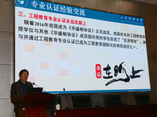 山東科技大學礦業與安全工程學院有兩個專業通過認證,其中采礦專業已有近十年的認證經歷。礦業與安全工程學院副院長劉偉韜將認證過程中的具體經驗與參會人員進行了分享,他對專業認證的主要環節進行了詳細的分析,同時指出工程教育認證工作需要全員參與,這項工作只有起點,沒有終點。