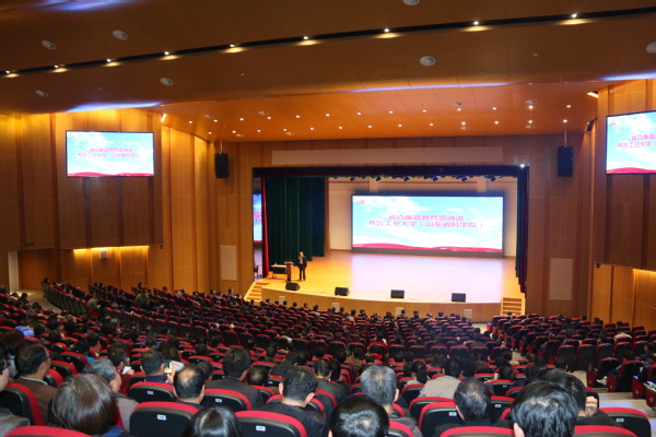 3月21日下午,省直廉政教育宣講團到我校進行廉政教育巡回宣講。省直廉政教育宣講團成員,省委黨校二級巡視員張傳武同志作了《以習近平新時代中國特色社會主義思想為指導不斷推動全面從嚴治黨向縱深發展》的宣講報告。山東省省直廉政教育宣講團成員、省紀委監委宣傳部副部長樊大偉、省紀委省監委宣傳部四級調研員田寧蒞臨指導,全體校(院)領導、校(院)副處級及以上領導干部、校副高及以上專業技術人員700余人參加了報告會,報告會由校(院)紀委書記王中文主持。