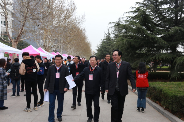 3月29日上午,“加快打造‘四個中心’2019年濟南市大型人才招聘暨高校畢業生就業雙選會”在我校舉辦。濟南市人力資源和社會保障局副局長、市就業辦主任竇進科,學校(科學院)校(院)長陳嘉川、副校(院)長曹茂永深入招聘會現場指導工作,各主辦部門分管領導、學校相關部門、學院負責人以及2萬余名畢業生參加了招聘會。