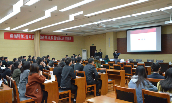 挑戰創未來,建功新時代。3月13上午,齊魯工業大學(山東省科學院)“挑戰杯”決賽在我校圖書館五樓報告廳舉行。校領導、教務處、學生處、校團委等部門負責人,各學院團委書記,各參賽項目指導老師以及參賽學生等參加終審決賽。本次大賽邀請到多名國賽專家擔任評委。