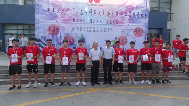 為慶祝中華人民共和國成立70周年,結合劉家義書記寄語青年學生的“強精神,強智識,強體魄,強能力”要求,在2019屆畢業生離校之際,6月14日,學校(科學院)第三屆畢業接力馬拉松活動在長清校區舉行。本次活動由組織部、學工部、校(院)團委主辦,食品科學與工程學院、工大健跑團、工大炫跑團承辦,來自校(院)各學院、學生組織、團體的二百余名師生參加了活動。校(院)副書記劉永波、副校(院)長周有波出席活動,并為師生代表頒獎。