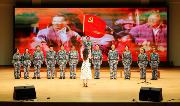 紅心向黨,紅歌嘹亮。在濟校(院)領導班子成員登臺高唱《沒有共產黨就沒有新中國》,拉開了黨日活動的序幕。各參賽隊統一著裝,精神飽滿,深情演唱了《愛我中華》《英雄贊歌》《解放區的天》《我們走在大路上》等經典紅色歌曲,表達了對黨和國家的無限熱愛,展示了新時代廣大黨員干部擔當作為、狠抓落實、凝心聚力、團結奮進的精神風貌,贏得了現場觀眾的陣陣掌聲。