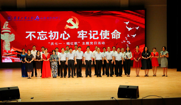 為慶祝建黨98周年,進一步激發愛黨愛國愛校熱情,充分展示廣大機關黨員干部昂揚向上的精神風貌,凝心聚力,加快推進科教融合,6月28日下午,學校(科學院)在長清校區藝體中心舉行“不忘初心 牢記使命” 慶七一·唱紅歌主題黨日活動。27個基層黨組織、400余名機關黨員干部和學生代表歡聚一堂,揮舞國旗,歌唱黨,歌唱祖國,用唱紅歌向黨的98周歲生日獻禮。