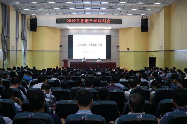 8月17日,學校(科學院)2019年暑期干部培訓班在長清校區學術報告廳舉行。黨委書記王英龍出席會議并作輔導報告,黨委領導班子成員、全體中層干部參加了學習培訓。
