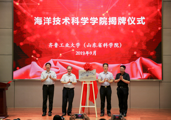 會上,馬遠良、王英龍、吳軍和王仁堂共同為海洋技術科學學院揭牌。陳嘉川宣讀了關于成立齊魯工業大學(山東省科學院)海洋技術科學學院的決定,并與王軍成研究員共同為海洋技術科學學院院徽揭牌。