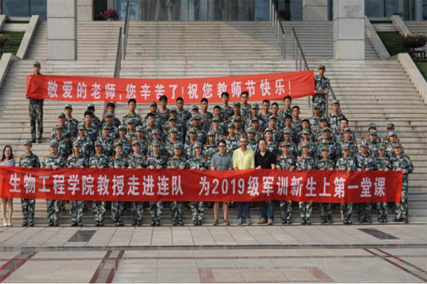教授進連隊,操場變講堂。生物工程學院組織專業教師走進軍訓場地,頂著烈日為新生現場上第一堂課,以“實干奉獻”的精神度過一個特殊的節日,受到新生的廣泛好評。