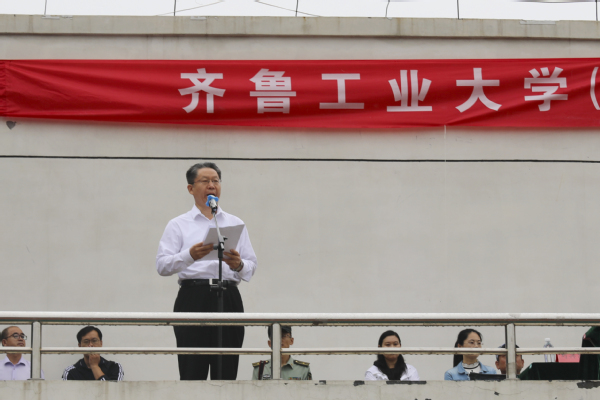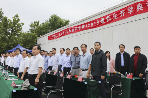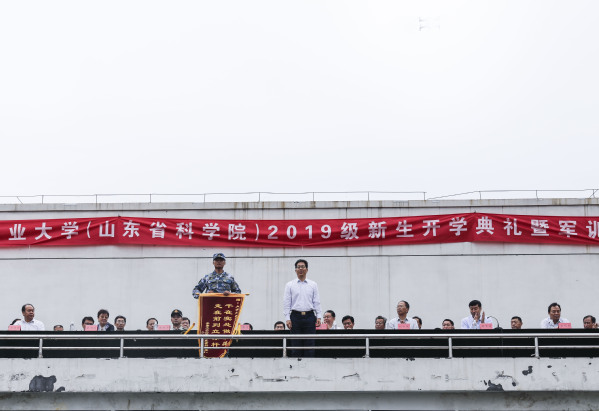 長清區人武部、校(院)職能部門、各學院、各研究所(中心)主要負責人,全體學工人員以及長清、歷城校區2019級新生參加了典禮。
