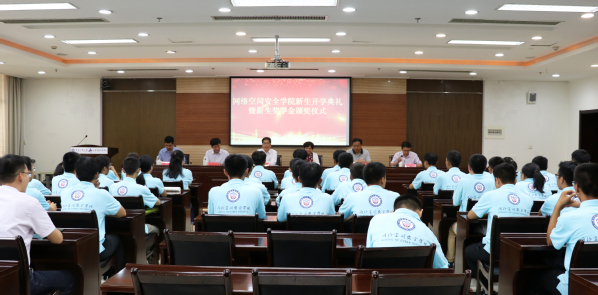 9月12日,網絡空間安全學院于辦公樓352室隆重舉行2019級新生開學典禮暨新生獎學金頒獎儀式,校(院)黨委書記王英龍、網安學院黨政班子、相關老師與全體新生參加典禮。