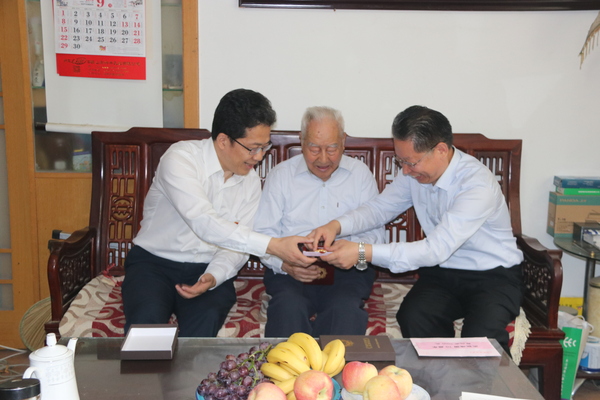 在慶祝中華人民共和國成立70周年之際,9月20日,黨委書記王英龍、校(院)長陳嘉川、黨委副書記張洪英代表校(院)黨委和行政專程看望了新中國成立前參加革命工作的老干部,并按照中組部、省委組織部、省老干部局通知要求,向老干部頒發“慶祝中華人民共和國成立70周年紀念章”、發放慰問金,向他們表達黨和政府的關心和愛護。