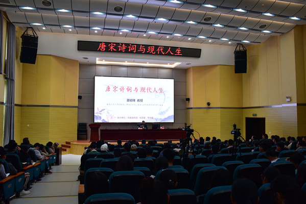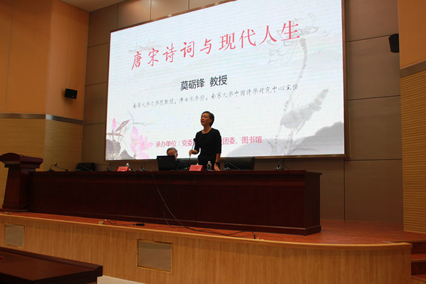 莫礪鋒教授于唐宋詩詞浸淫日久,功力深厚。一個半小時的報告,他聯系古今中外,旁征博引,詩、詞、曲、人物故事、歷史典故信手拈來,為聽眾帶來了一場美的享受,令大家深切感受到了中華詩詞的魅力和價值。