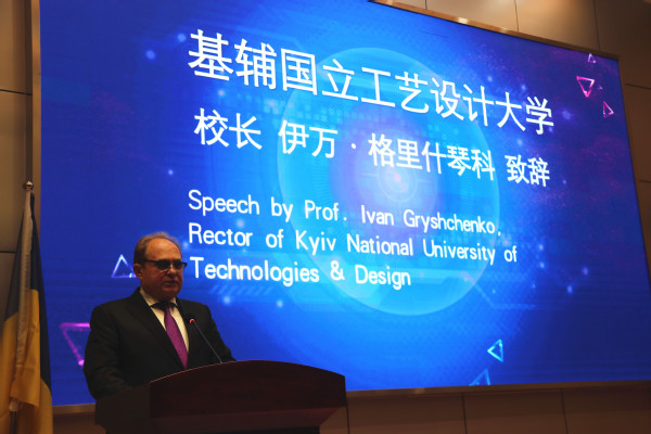 基輔國立工藝設計大學校長伊萬·格里什琴科致辭。他指出,基輔學院的成立,開創了兩個友好民族在教育和科學領域的新視野,促進了未來思想和戰略的交流以及精神價值的提高?;o國立工藝設計大學外事處長瓦倫蒂娜·舒里加女士宣讀了烏克蘭駐華大使館公使銜參贊維克多·波諾馬廖夫的來信致辭,致辭中表示烏克蘭高度重視與中國的戰略伙伴關系,并熱切希望將其推向一個全新的高度?;o學院的成立,將大大促進中國和烏克蘭之間的親密交流,成為雙方合作辦學的典范。