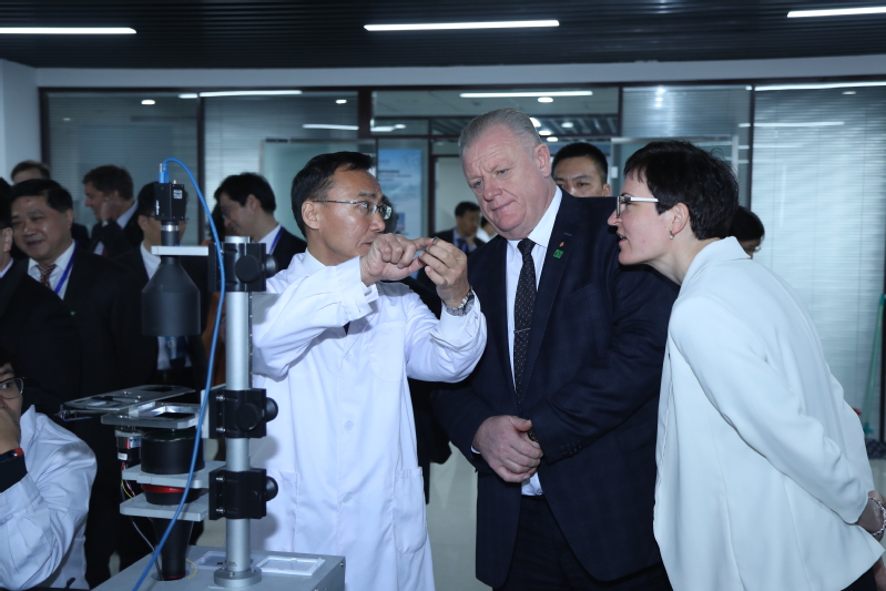 開幕式后,阿爾吉達斯·斯通柴蒂斯一行9人訪問了激光研究所,現場參觀了無損檢測、視覺檢測、窄線寬激光器等實驗室和成果展示,對學校(科學院)激光技術研發能力和產業化水平高度認可,并提出要進一步加強合作。王英龍表示,本次論壇將成為山東省與立陶宛深化激光技術領域務實合作的平臺,為雙方優勢互補、互利共贏提供機遇。
