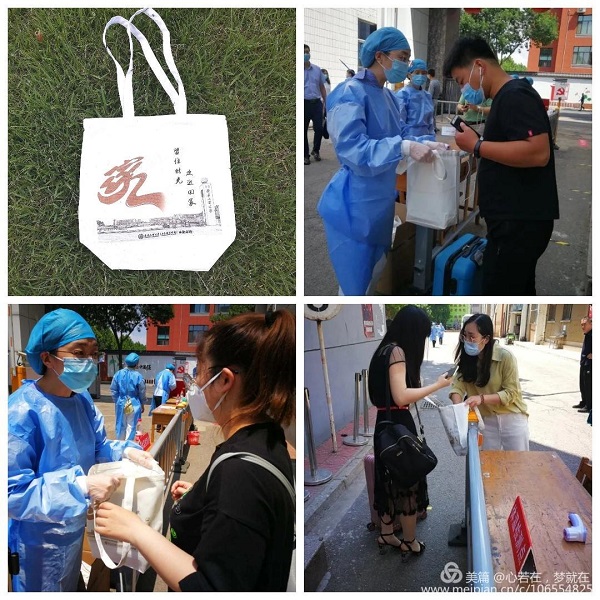 學院特意為返校學生準備了愛心防護包,里面有體溫計、口罩、消毒噴劑等生活防護必需品,“心貼心”的服務,為每一名返校的學生做好安全保障工作。