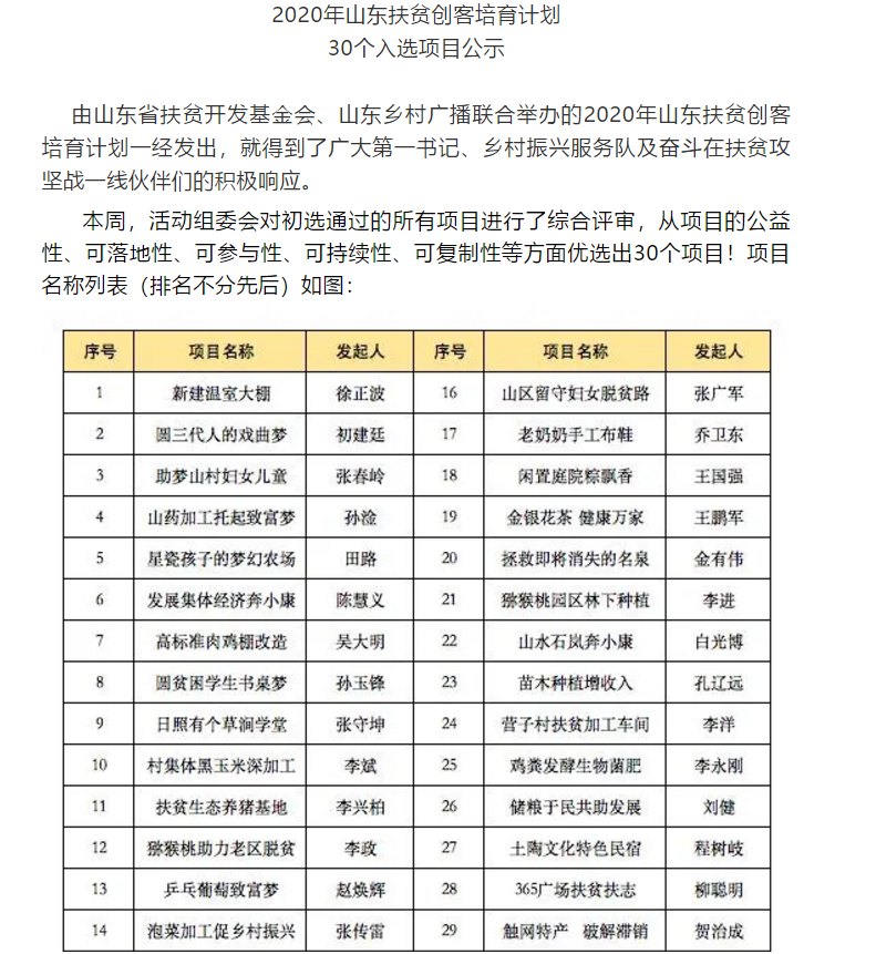 8月5日,山東省扶貧開發基金委員會公布了扶貧創客培育計劃入選項目。學校(科學院)派駐臨邑縣第一書記工作組的三個項目成功入選。
