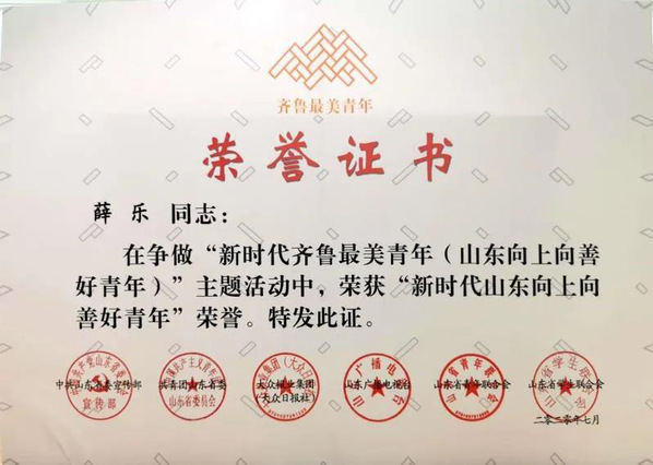 活動開展期間,校(院)團委積極響應號召,擴大宣傳范圍,廣泛動員參與,對所有符合條件的優秀青年典型做到應推盡推。組委會經過初審、網絡評點、專家評審、實地考察、線上線下公示等一系列程序,在760余名優秀青年中評選產生包括薛樂同學在內的60名“新時代山東向上向善好青年”。