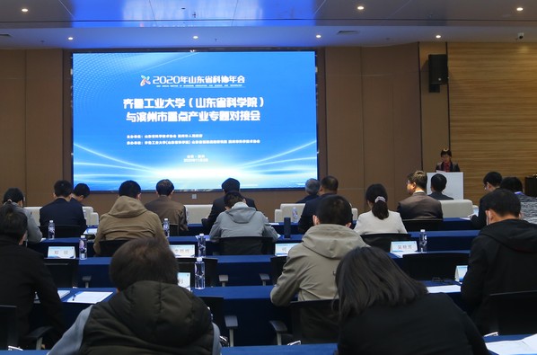 11月2日上午,由山東省科協、濱州市人民政府主辦,齊魯工業大學(山東省科學院)、省創新戰略研究院、濱州市科協承辦的“2020年山東省科協年會——齊魯工業大學(山東省科學院)與濱州市重點產業專題對接會”在渤海先進技術研究院召開。會議由省科協副主席張波主持,濱州市副市長曹玉斌、校(院)副校(院)長崔雷出席并致辭,來自學校(科學院)各領域專家學者,和濱州當地高端化工、醫養健康和新能源新材料等“十強”產業優秀企業家代表70余人參加本次對接會。
