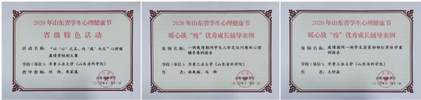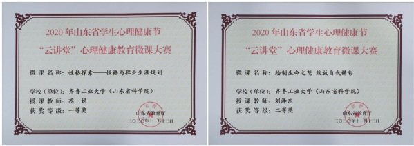 2020年山東省學生心理健康節由山東省教育廳主辦,以“‘疫’路同行,心靈綻放”為活動主題,經過高校推選、專家評審、網上公示,2020年山東省學生心理健康節共評選出“云講堂”心理健康教育微課大賽高校組獲獎作品一等獎18項、二等獎23項、三等獎32項,省級特色活動高校組60項,暖心戰“疫”優秀成長輔導案例高校組115項。校(院)蘇娟老師主講的《性格探索——性格與職業生涯規劃》獲得“云講堂”心理健康教育微課大賽一等獎,劉澤東老師主講的《繪制生命之花 綻放自我精彩》獲得“云講堂”心理健康教育微課大賽二等獎;劉偉、李星逸兩位老師指導的《“以‘心’之名、向‘疫’而生”心理健康情景短劇大賽》獲得2020年山東省學生心理健康節省級特色活動;曲爽梅、馮曄兩位老師的輔導案例《一例疫情期間學生人際交往問題的心理輔導案例報告》和王好焱老師的輔導案例《疫情期間一例學生居家抑郁打算休學案例報告》被評為暖心戰“疫”優秀成長輔導案例。2020年山東省高校心理健康教育工作精品項目按照“公平公正、標準引領、質量優先、彰顯特色”的原則開展項目遴選工作,經過高校申報和專家集中評議論證,擇優推選一批精品項目。校(院)孫寧老師主持的《“凝聚”大學生心理拓展工作室》成功入選。