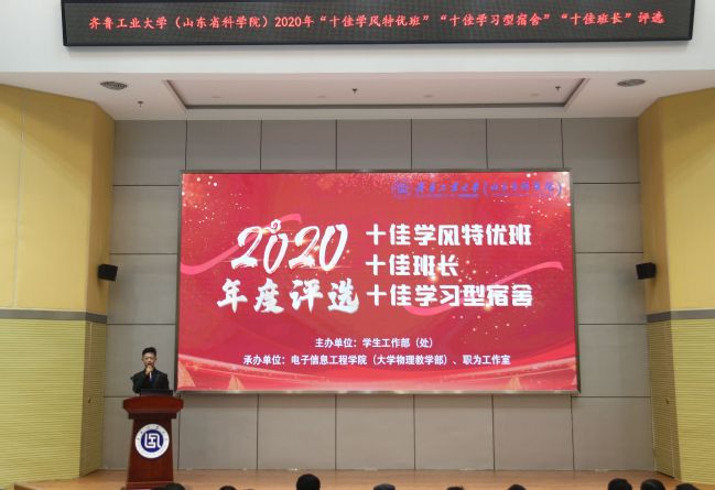 11月26日,齊魯工業大學(山東省科學院)2020年“十佳學風特優班、十佳學習型宿舍、十佳班長”評選活動在長清校區學術報告廳隆重舉行。此次活動由學生工作部(處)主辦,電子信息工程學院(大學物理教學部)、職為工作室承辦,師生代表300余人參加了本次活動。