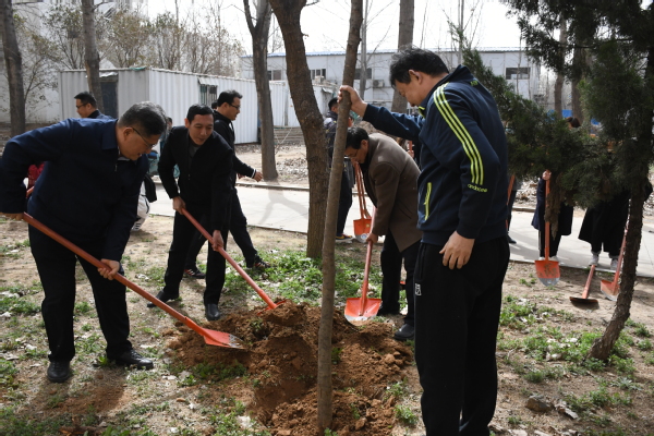 在和煦的春風中,植樹現場一片繁忙景象,到處洋溢著快樂的氣息。師生們一起揮鍬鏟土、手扶樹苗、培土圍堰,各個環節銜接有序,配合默契,充分發揚了團結、互助、友愛的精神。經過近一個小時的辛勤勞動,一株株新栽的苗木迎風而立,為工大的春天植下了一片新綠,增添了一片生機,播下了一份希望。