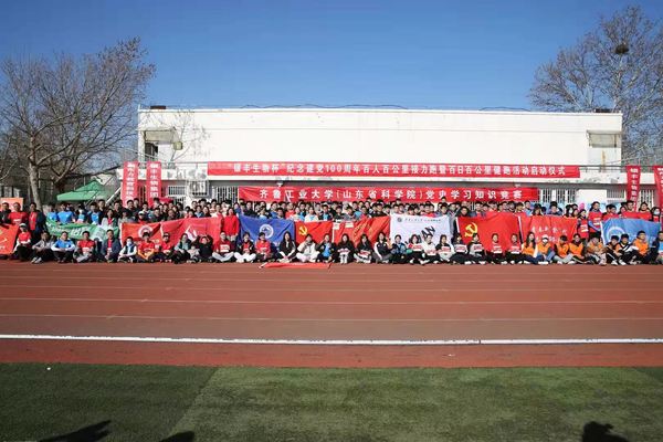 為慶祝中國共產黨百年華誕,牢記黨的宗旨,助推黨史學習教育走深走實,帶動廣大師生以昂揚姿態奮力開啟建設一流大學新征程,3月21日,齊魯工業大學(山東省科學院)在長清校區開展慶祝建黨100周年百人百公里接力跑暨百日百公里線上跑活動。本次活動由黨委組織部、黨委宣傳部、學生工作部(處)、團委、工會主辦,食品學院、能動學院、工大健跑團、工大炫跑團等單位和團體承辦,包括各學院代表隊以及銀豐生物集團、濟南九三學社、長清馬拉松協會等友好單位在內的31支代表隊共300余跑者參加本次活動?;顒佑墒称穼W院黨總支副書記孔繁繁主持。