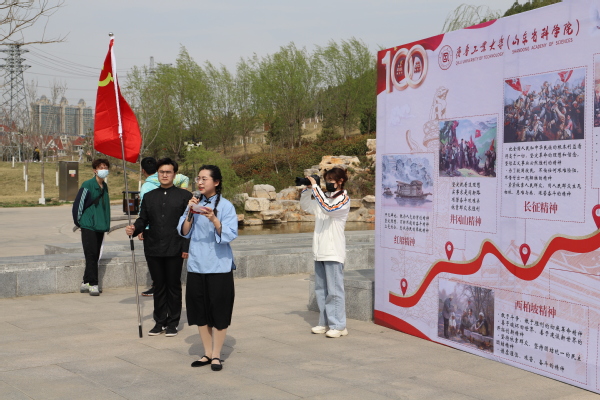 為深入學習貫徹習近平總書記在黨史學習教育動員大會上的重要講話精神,推動黨史學習教育載體化、多樣化,進一步創新學習形式、豐富學習內涵、提升學習實效,3月25日下午,齊魯工業大學(山東省科學院)“傳承紅色精神,凝聚建功力量”黨史學習教育主題實踐活動在長清區文昌山山體公園舉行。校(院)黨委副書記吳衍濤,紀委書記、監察專員房克樂,副校(院)長喬丙武出席活動?;顒佑尚#ㄔ海┕飨螌W遠主持。