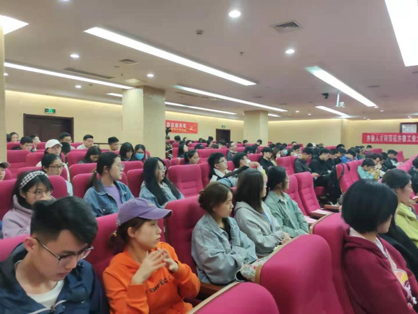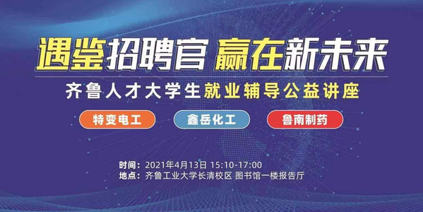 4月14日,“遇鑒招聘官,贏在新未來”大學生就業輔導公益講座在齊魯工業大學(山東省科學院)長清校區圖書館報告廳舉辦。特變電工山東魯能泰山電纜有限公司人才招聘總監董慧、無棣鑫岳化工集團有限公司人力資源部主任李維功、魯南制藥集團招聘經理譚賢廣做就業輔導主題分享,學生工作部(處)就業指導中心老師,200余名學生參加了此次活動。