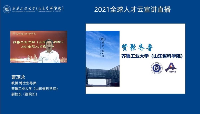 5月21日,齊魯工業大學(山東省科學院)2021全球人才云宣講直播活動在長清校區舉辦。副校(院)長曹茂永通過網絡直播平臺,面向全球不同國家和地區的3000余名青年人才宣傳介紹校(院)基本情況、平臺建設和人才引進政策。山東省計算中心主任楊美紅、生物基材料與綠色造紙國家重點實驗室副主任吉興香分別介紹了重點平臺的發展和人才需求情況。