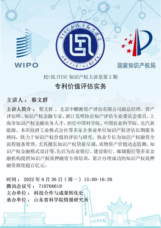 校(院)TISC知識產權大講堂第2期:專利價值評估實務