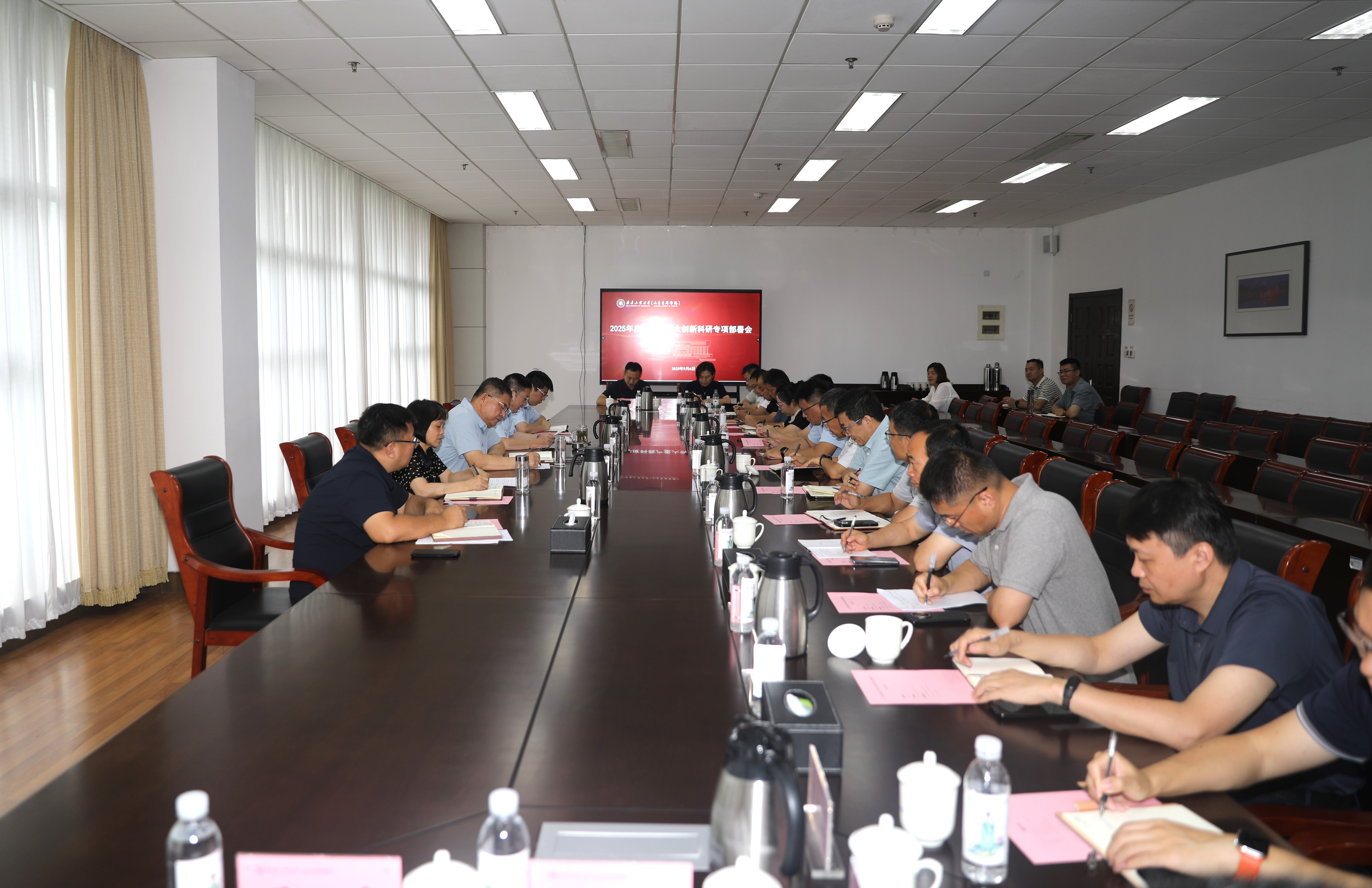 9月6日上午,校(院)在長清校區召開2025年度科教產重大創新科研專項部署會。校(院)黨委書記吳衍濤出席會議并講話,校(院)長段培永就專項實施作具體部署。會議由副校(院)長楊美紅主持。各項目負責人、科研管理部相關同志參加會議。