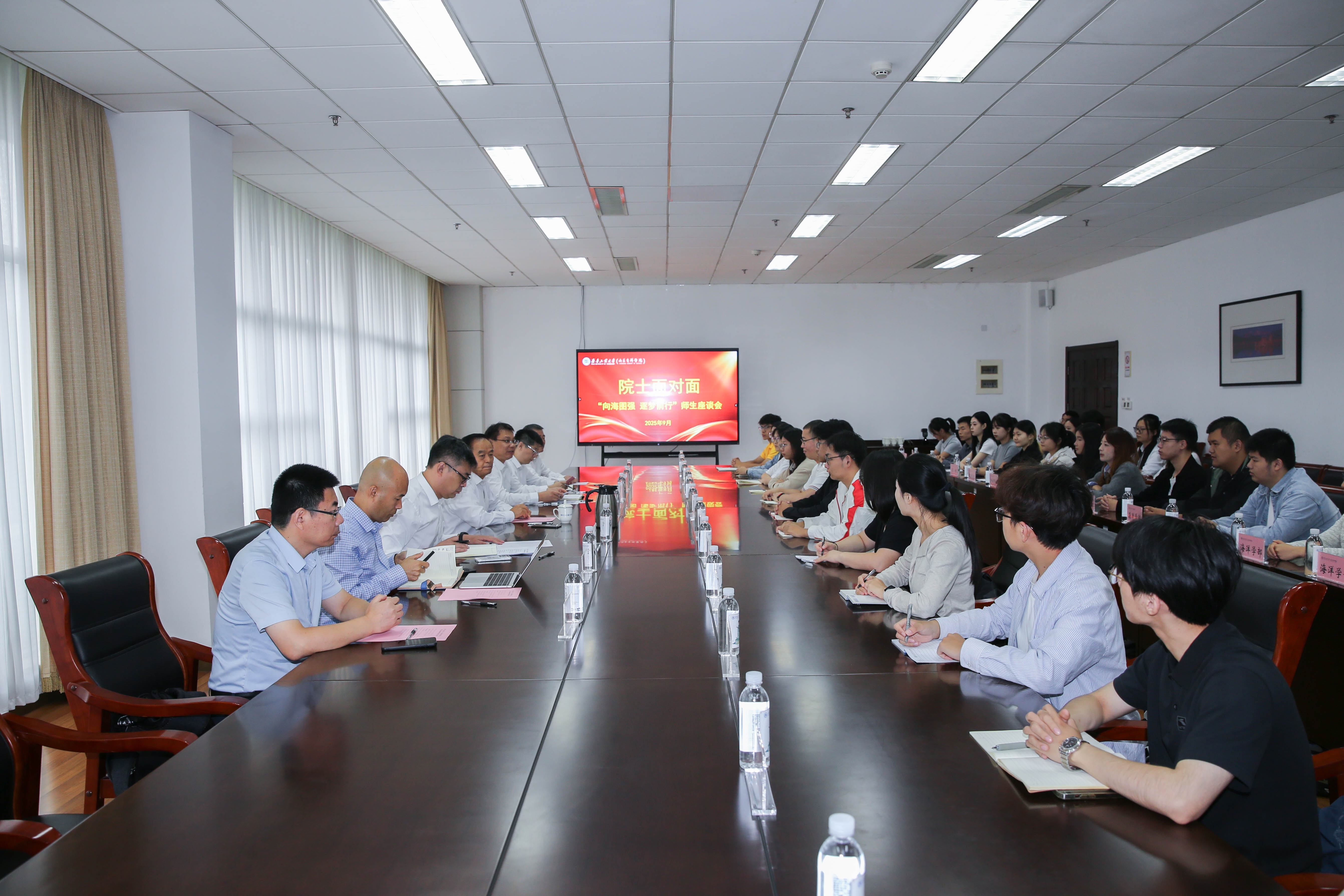 王軍成院士在座談中回顧了四十多年來他和團隊錨定海洋監測浮標領域“從零開始”到跟跑、并跑、領跑的艱辛奮斗歷程。他帶領團隊始終秉承“堅韌不拔、永不言敗”的科研精神,瞄準國際科技前沿,突破了海洋監測浮標系列關鍵技術,構建發展了海洋資料浮標設計理論與技術體系,實現了我國海洋浮標的系列化、產品化,支撐建設了國家海洋環境浮標監測網、國家海洋氣象網,為我國海洋環境預報與保護、海洋防災減災、海洋資源開發和海洋權益維護等提供了強有力的技術支撐。王軍成院士鼓勵青年學子們樹立遠大志向,將個人理想融入國家發展之中,在求學與成長的道路上,確立清晰目標,不畏困難、持之以恒、久久為功,在科研領域努力實現更多突破,用奮斗和汗水實現自己的青春夢想。
