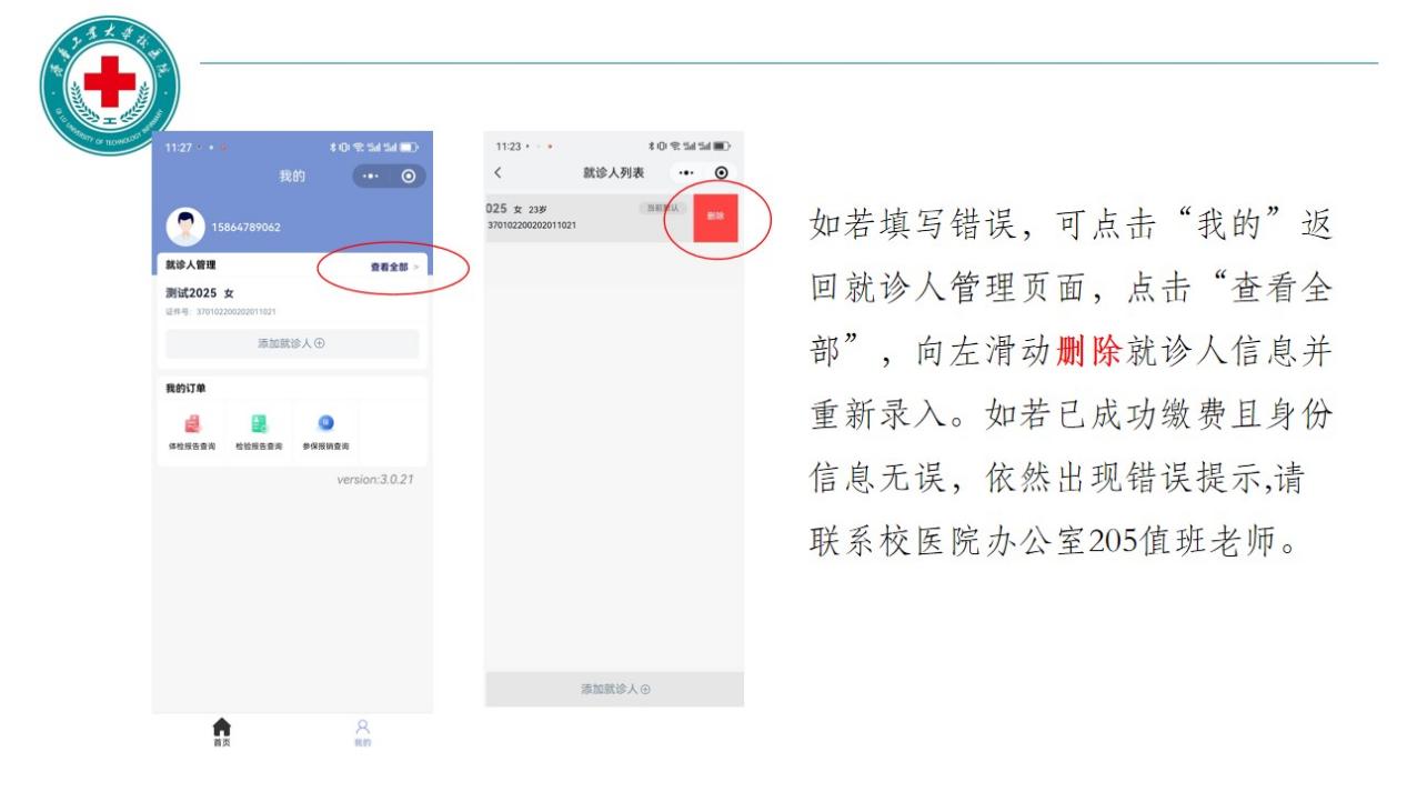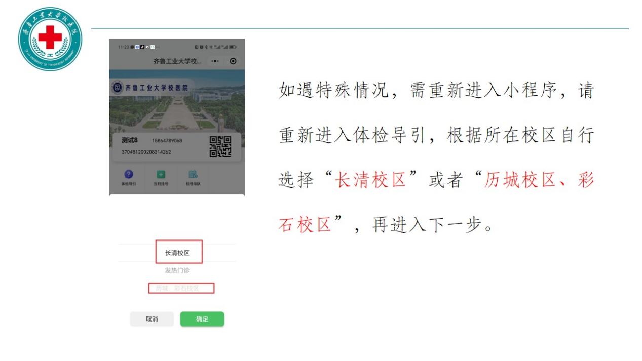 校醫院北門入口處體檢中心,長清校區從藝體中心南停車場東側校醫院北大門排隊。