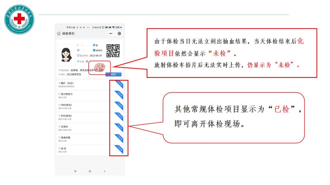 1.截止到2025年9月24日(本周三)未按要求補檢或復檢的人員,將以其最后一次體檢的結果為準留檔并上報。請按規定時間前來補檢或復檢。具體復檢名單將以郵件的形式發送至各新生輔導員處,請務必接收后通知到學生本人。請仔細核對需要補檢或復檢的項目,一位同學可能有一項或多項。